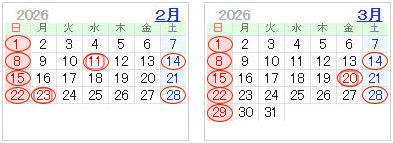 <定休日 第2土曜日・第4土曜日・日曜日・祝日>